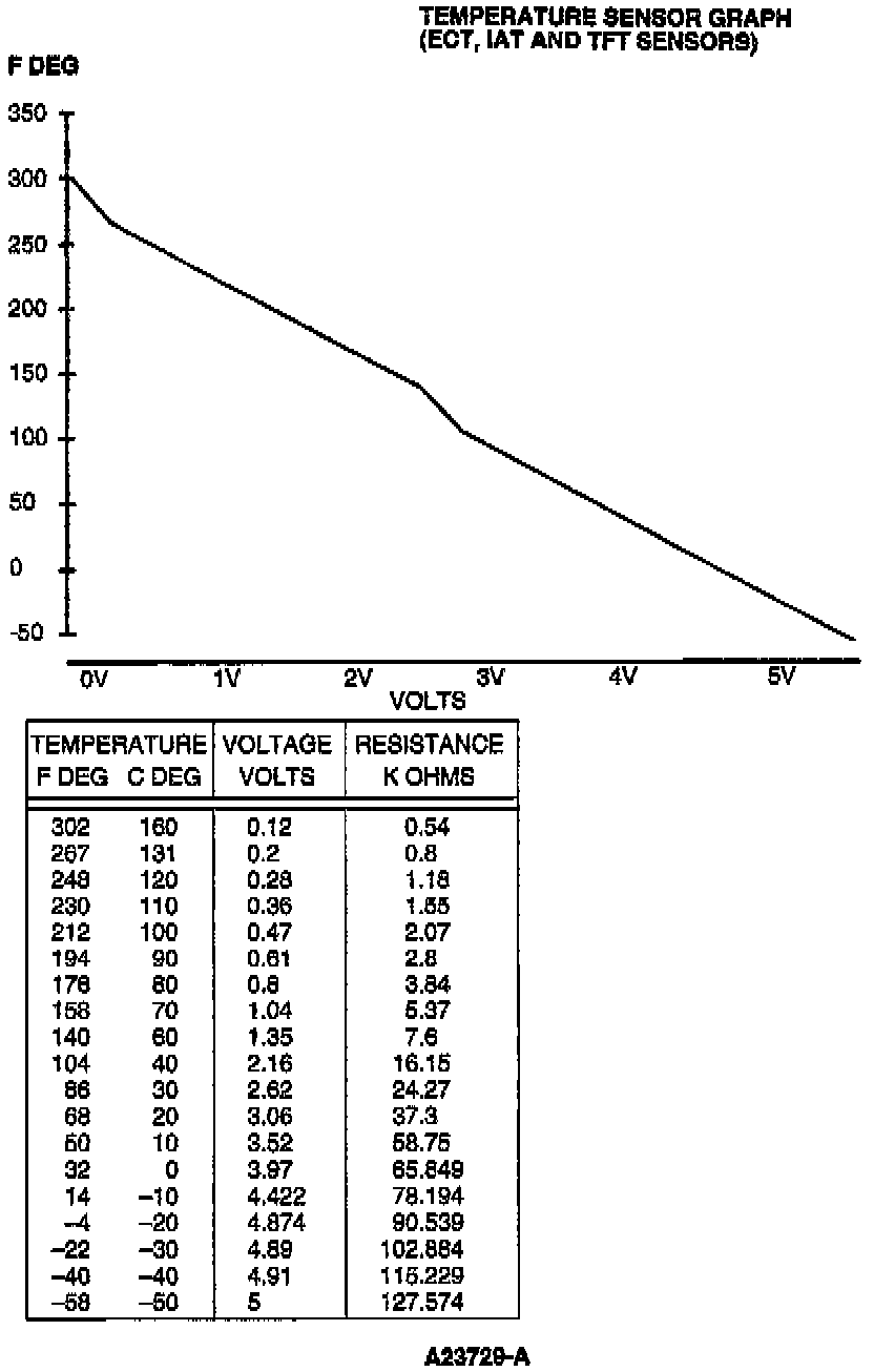 Temperature Sensor Graph (ECT, IAT, and TFT Sensors)