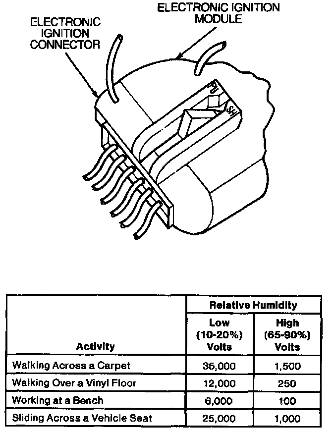 CAUTION: Electronic modules are sensitive to static electrical charges. If exposed to these charges, damage may result.If service of any module is required, use the following safeguards to avoid damage to components.
