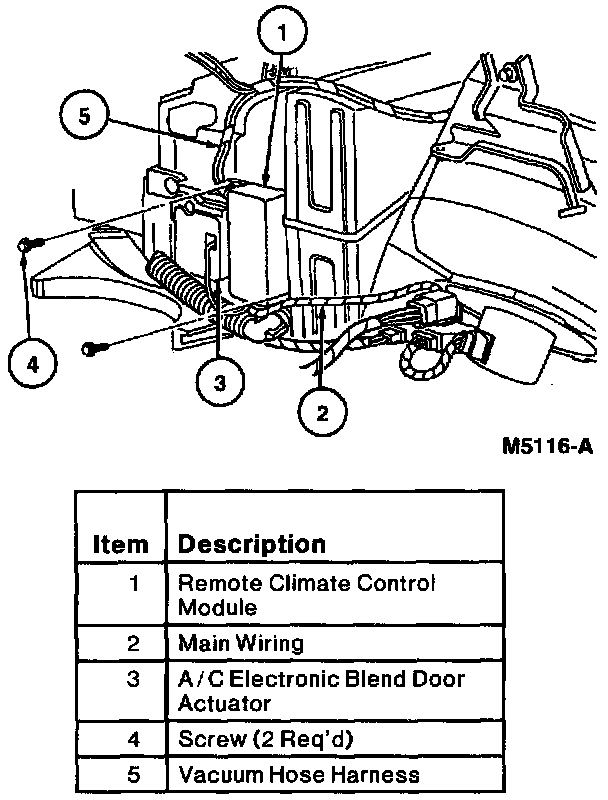 3. Remove two screws retaining remote climate control module to A/C evaporator housing.