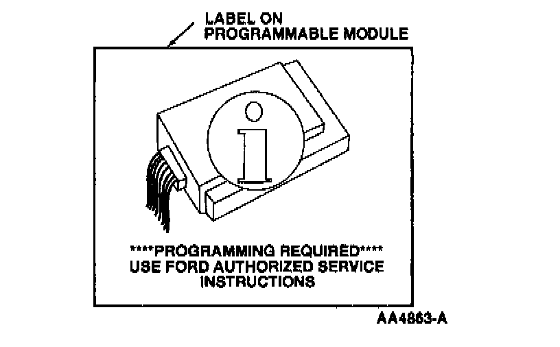 A replacement PCM will display a label as shown. This indicates the need to retrieve VID data from the original PCM before removing from the vehicle. Refer to the flash VID block update procedure. After retrieving the VID data from the original PCM, install the new PCM. Select "Restore PCM config. (1)" to download the stored data. If the original PCM is nonfunctional, it becomes necessary to manually reprogram the VID block. The scan tool is used to perform this procedure and is done through the "PCM Programming" selection as described by the flash EEPROM procedure following. Follow screen instructions.