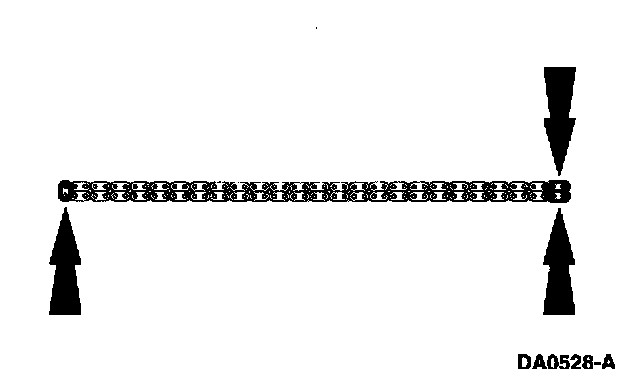 If copper links are not visible, mark two links on one end and one link on the other end, and use as timing marks.