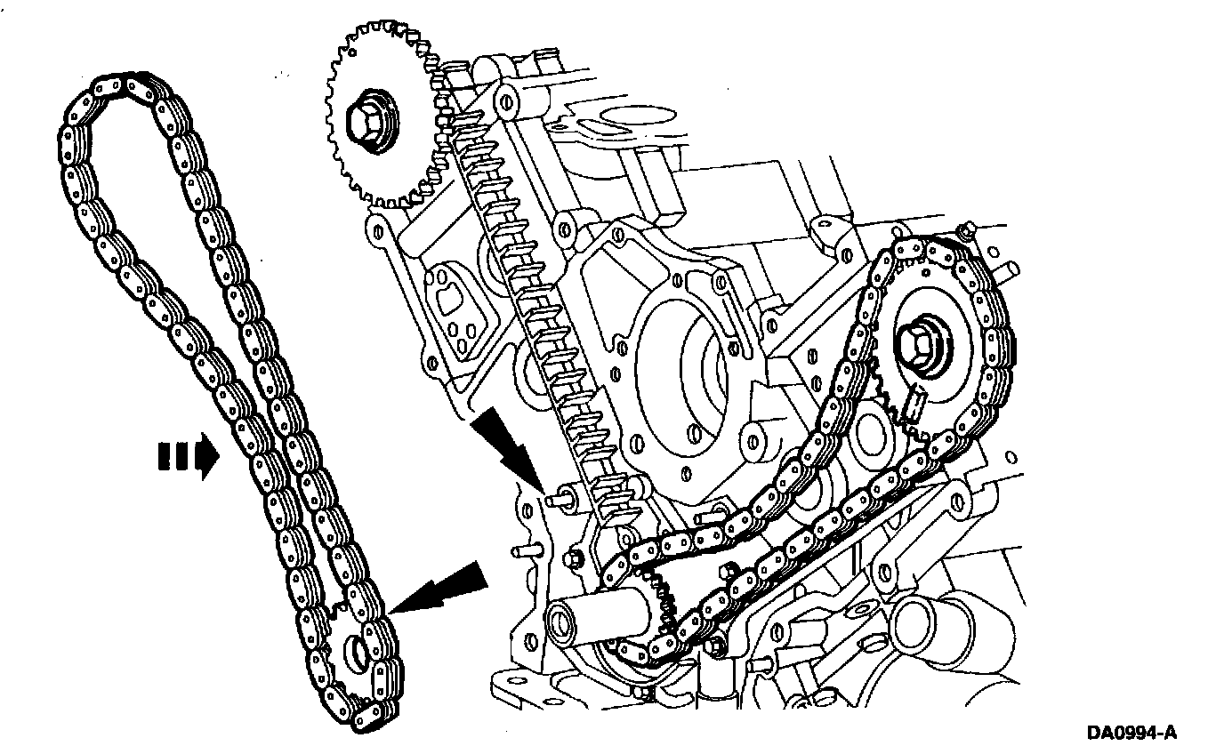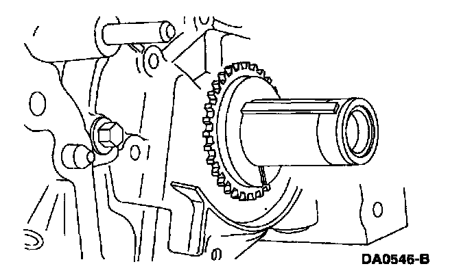 - Install the outer crankshaft sprocket and timing chain with the long hub of the crankshaft sprocket facing inward.