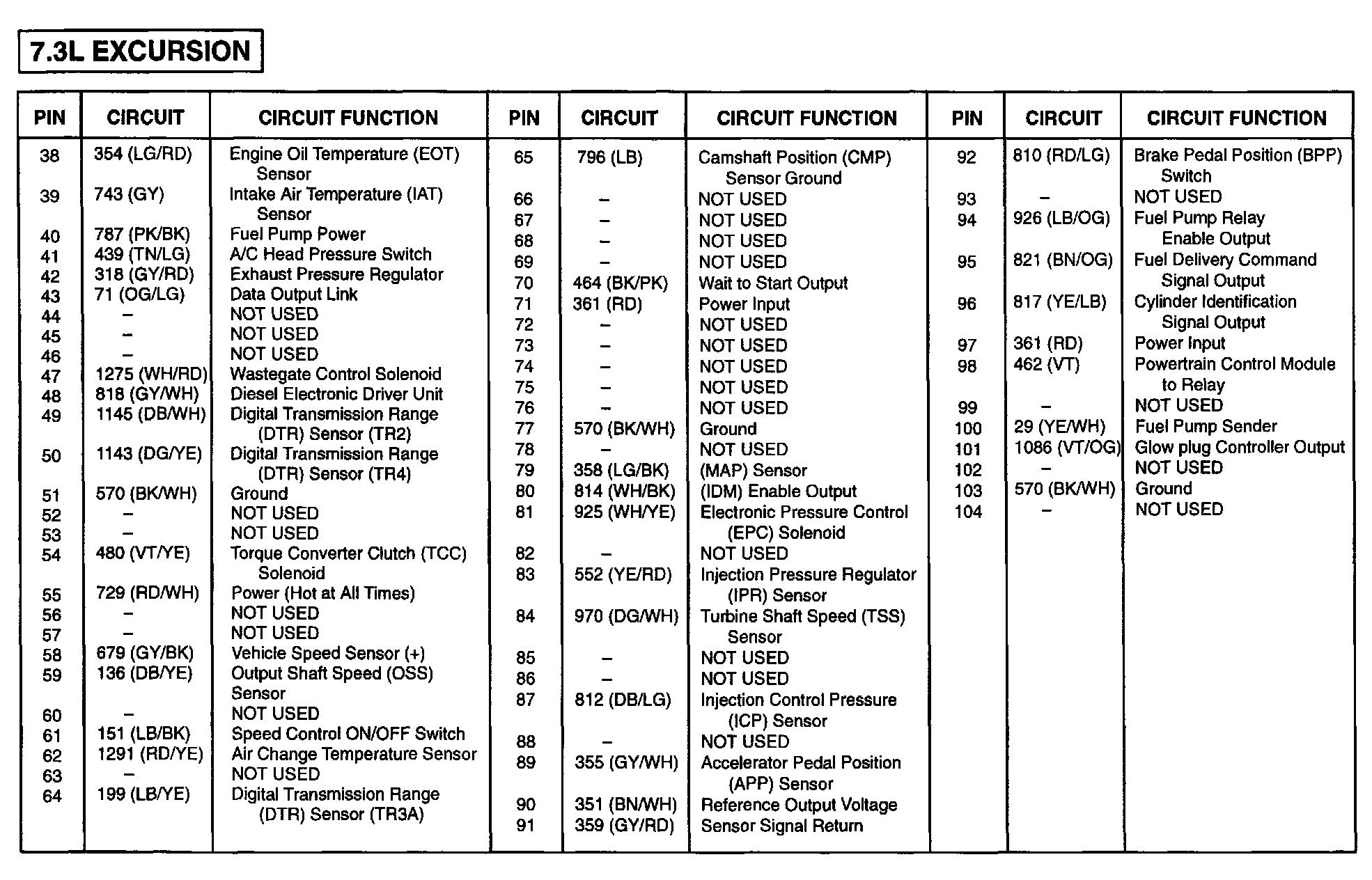 Excursion 2WD V8-7.3L DSL Turbo VIN F