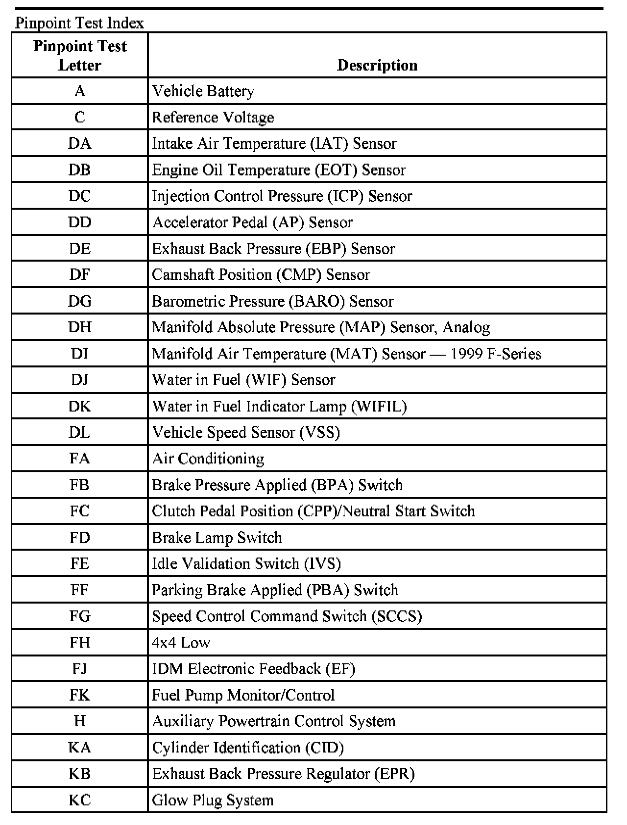Pinpoint Test Index
