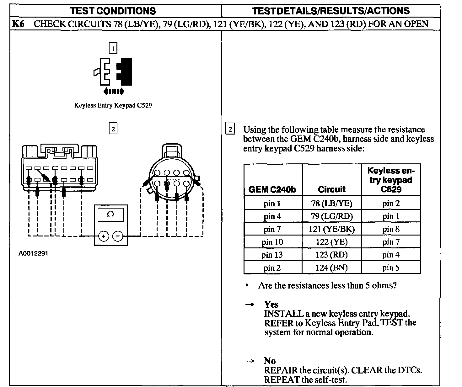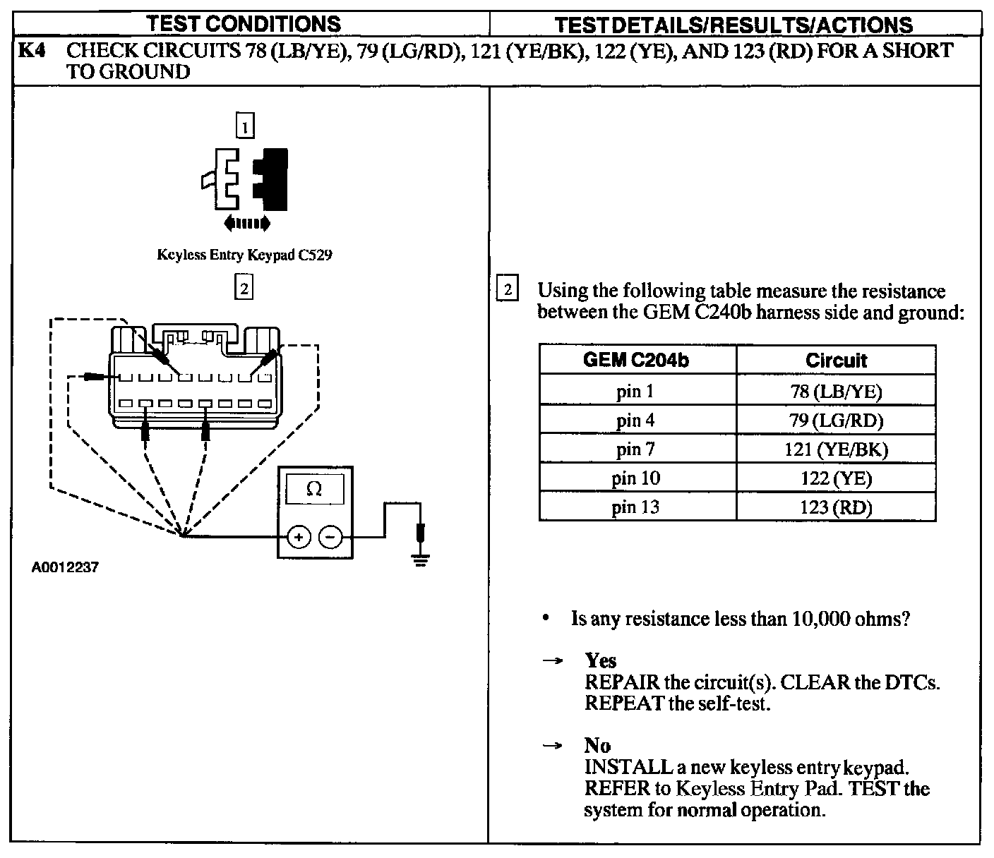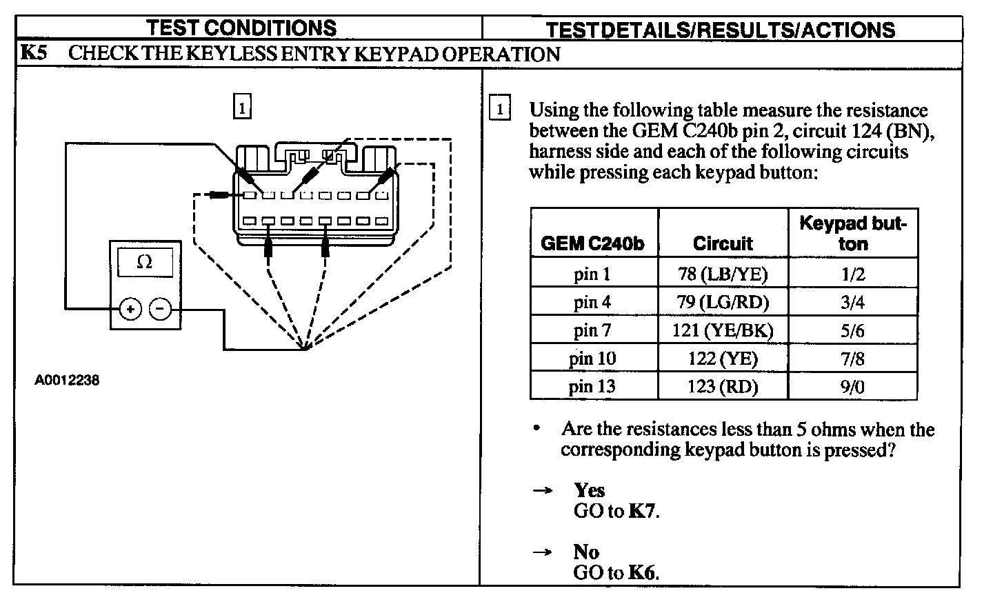 Test K: Doors Do Not Lock/Unlock Using The Keyless Entry Keypad