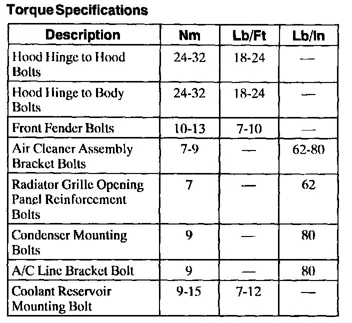 Torque Specifications: