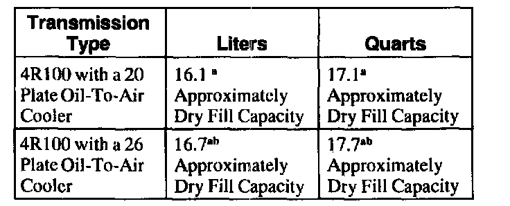 a Actual quantities will vary a few ounces based on applications. Always use the fluid level indicator for setting the proper level.