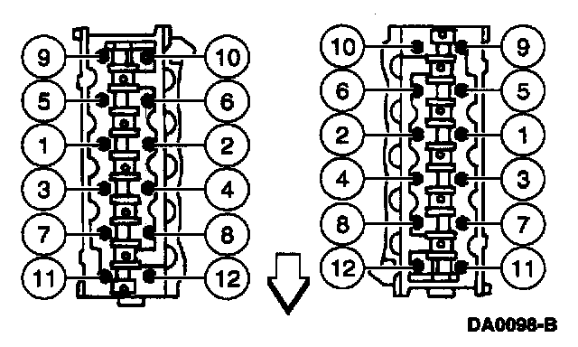 Tighten the LH bolts in the sequence shown.