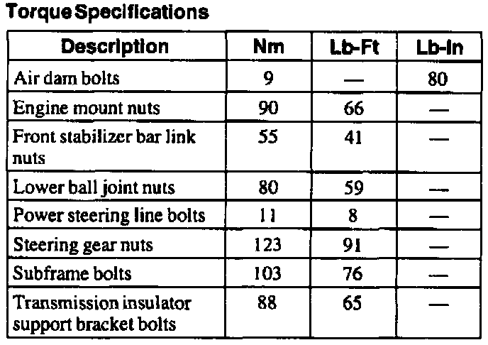 Torque Specifications: