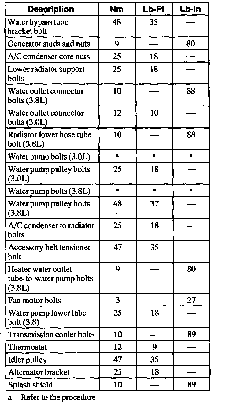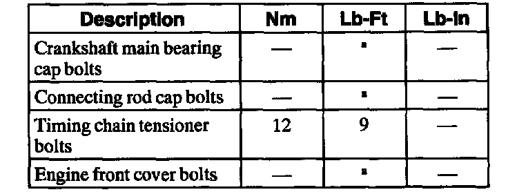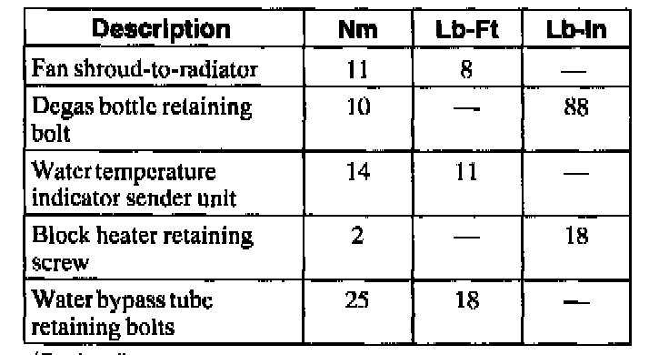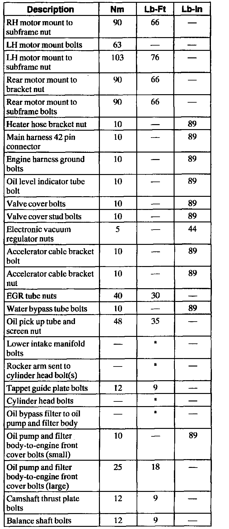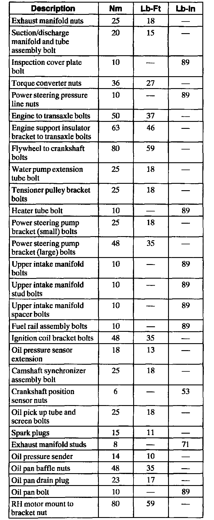 General Torque Specifications