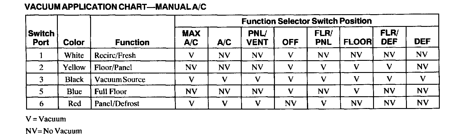 Vacuum Application Chart - Manual A/C: