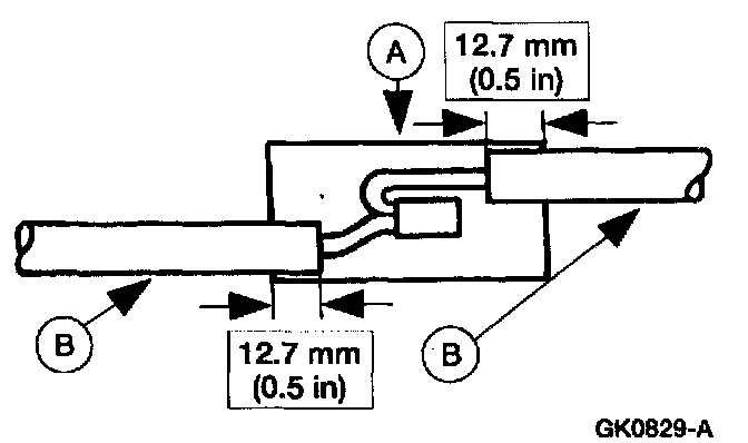 5. Position the (A) heat shrink tube over the (B) wire repair.