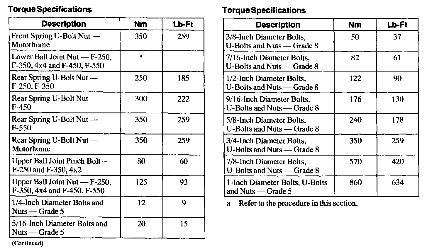 Torque Specifications