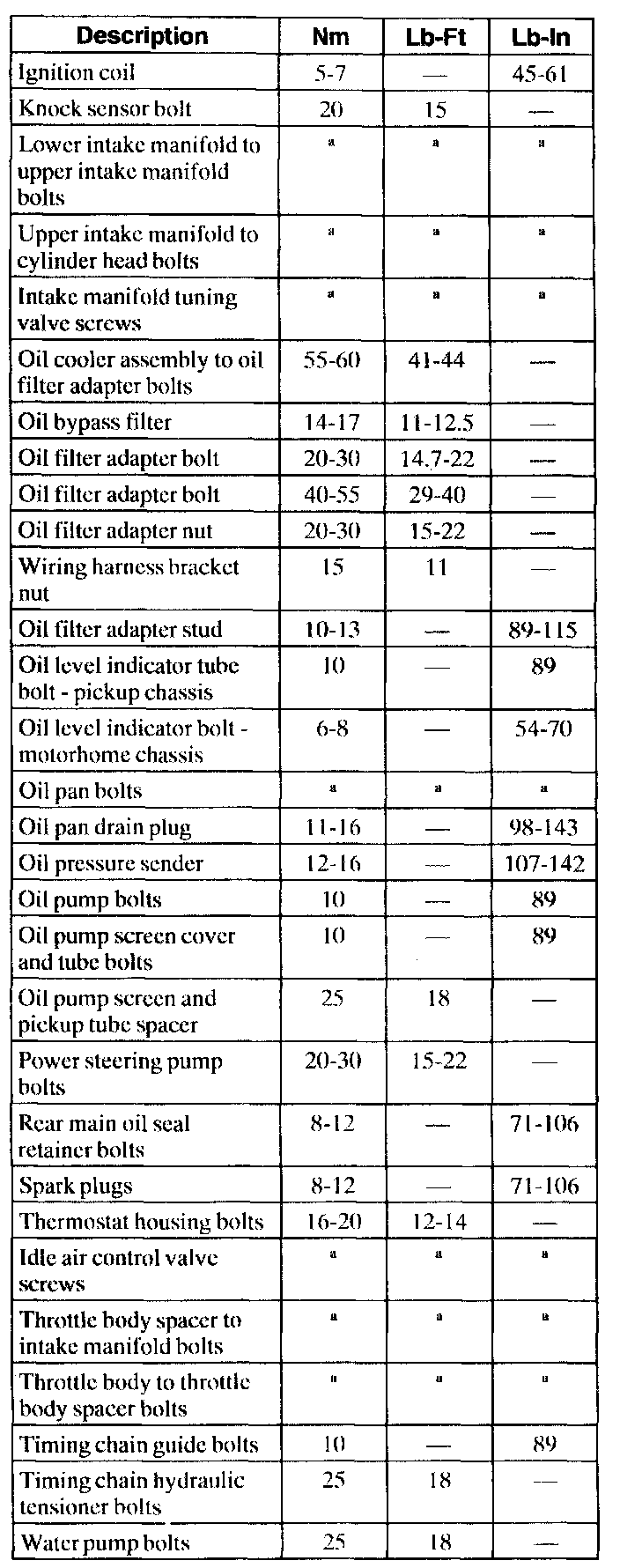 Torque Specifications