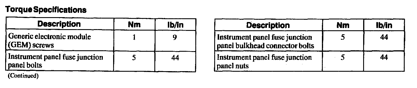 Torque Specifications: