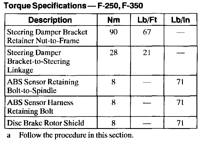 Torque Specifications - F-250, F-350