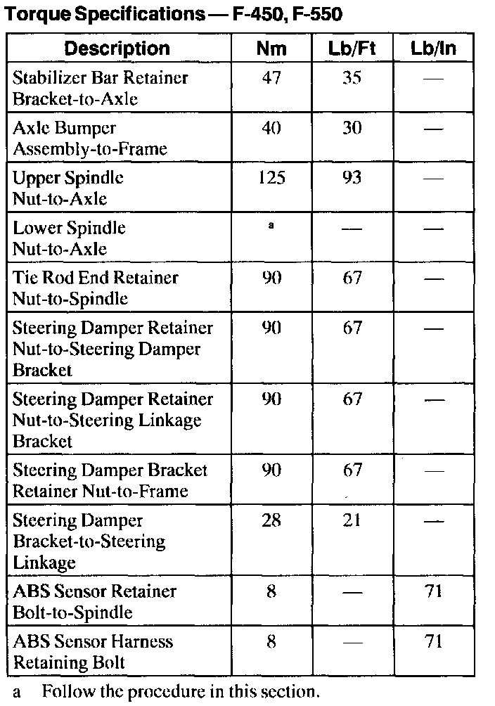 Torque Specifications - F-450, F-550