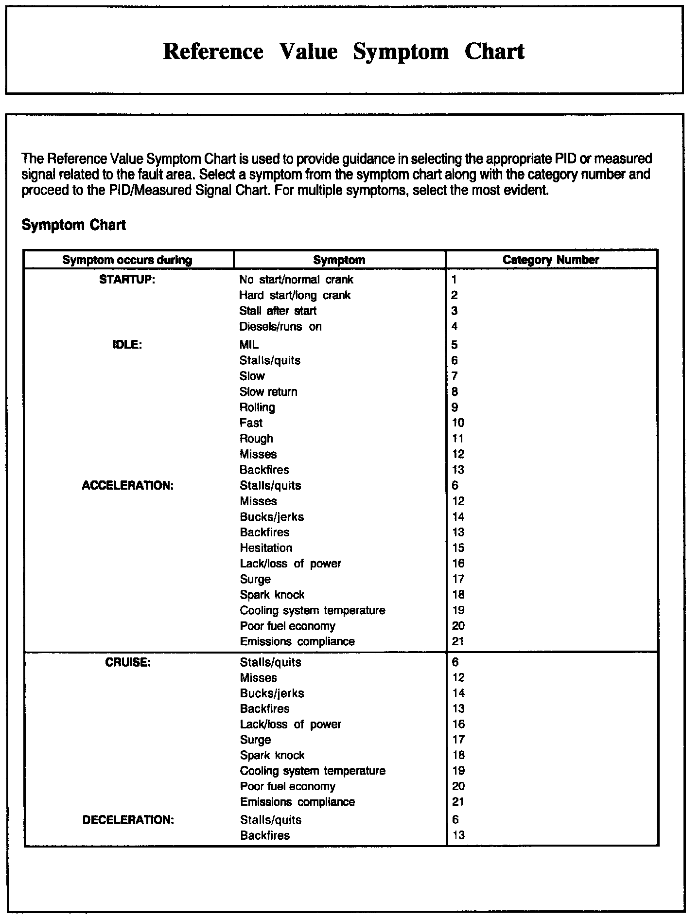 Reference Value Symptom Chart