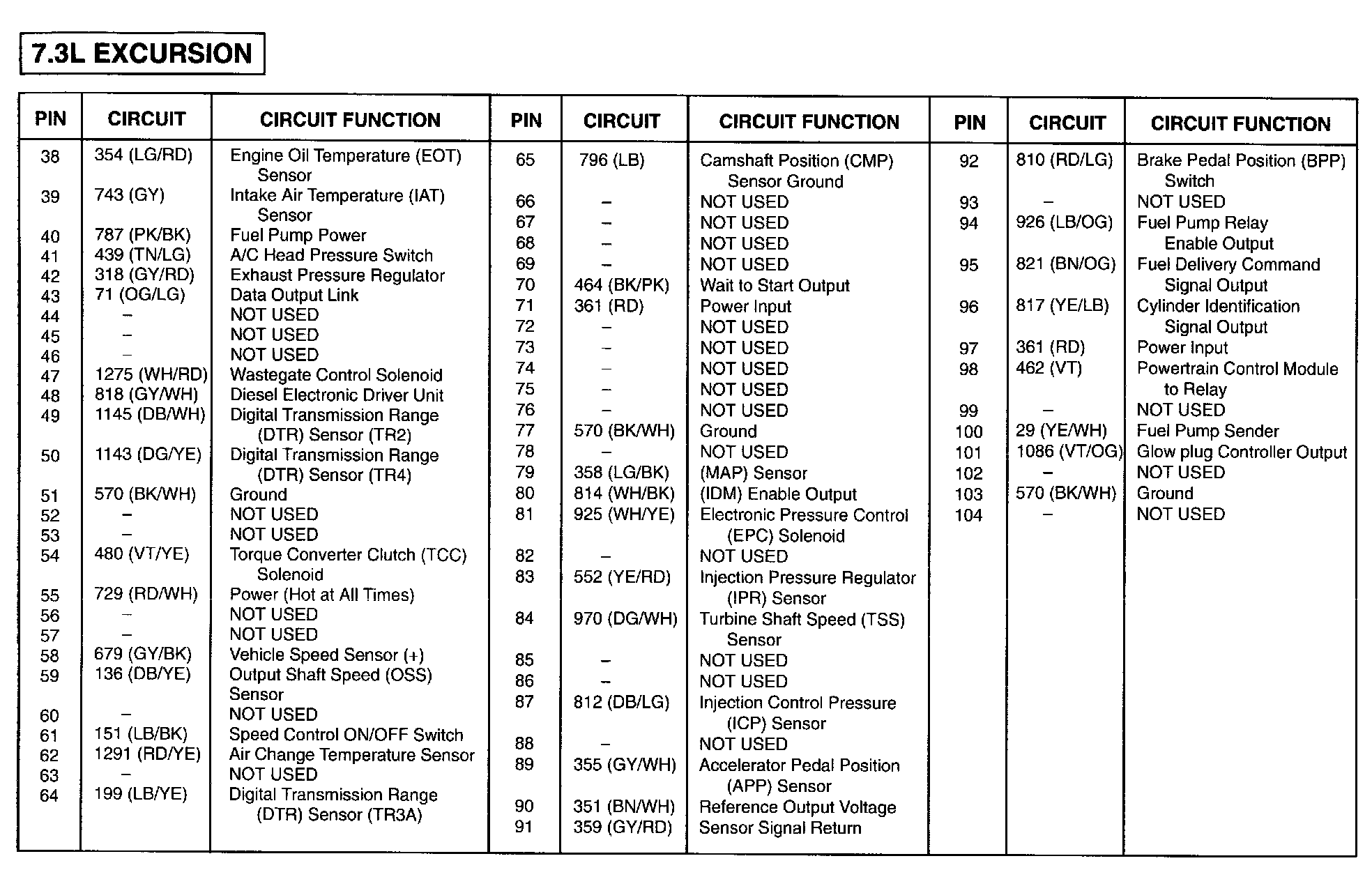 Excursion 2WD V8-7.3L DSL Turbo VIN F