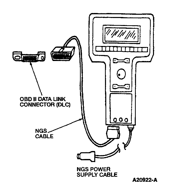 The NGS Tester or generic scan tool must be connected to the Data Link Connector (DLC) for communication with the vehicle.