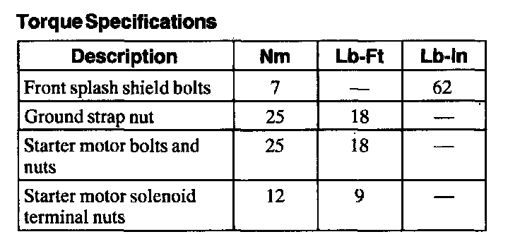 Torque Specifications: