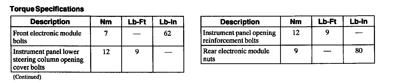 Torque Specifications: