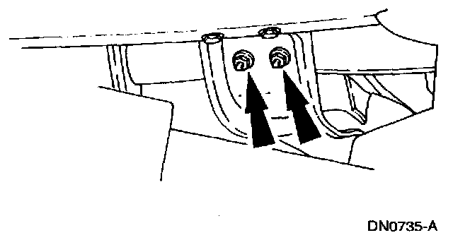 2. Loosely install the transmission support crossmember nuts and bolts (RH side).