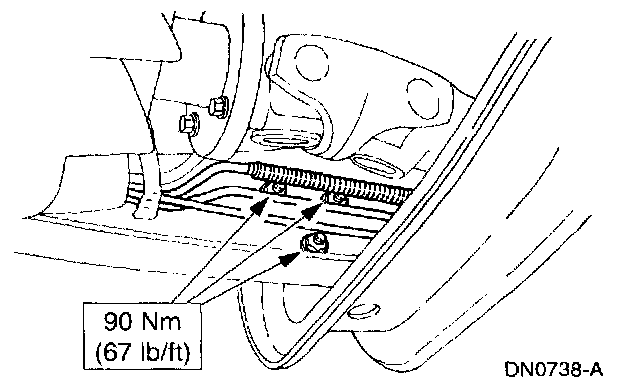 3. Tighten the transmission support crossmember nuts and bolts (LH side) to specification.