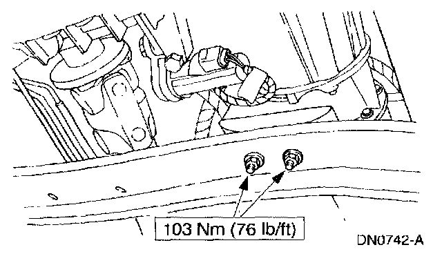 1. NOTE: Refer to Specifications for transmission support crossmember nut and bolt applications. Specifications