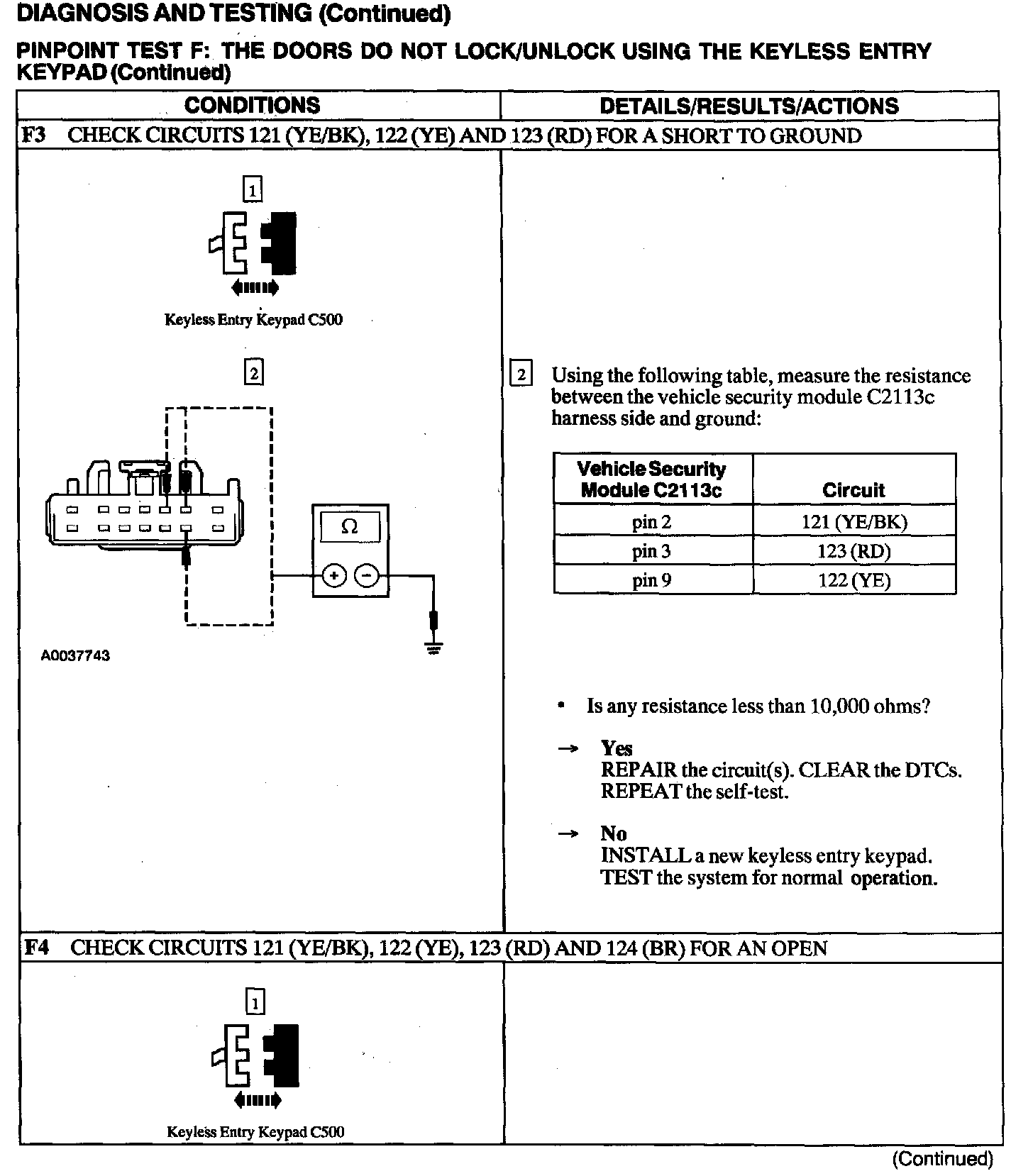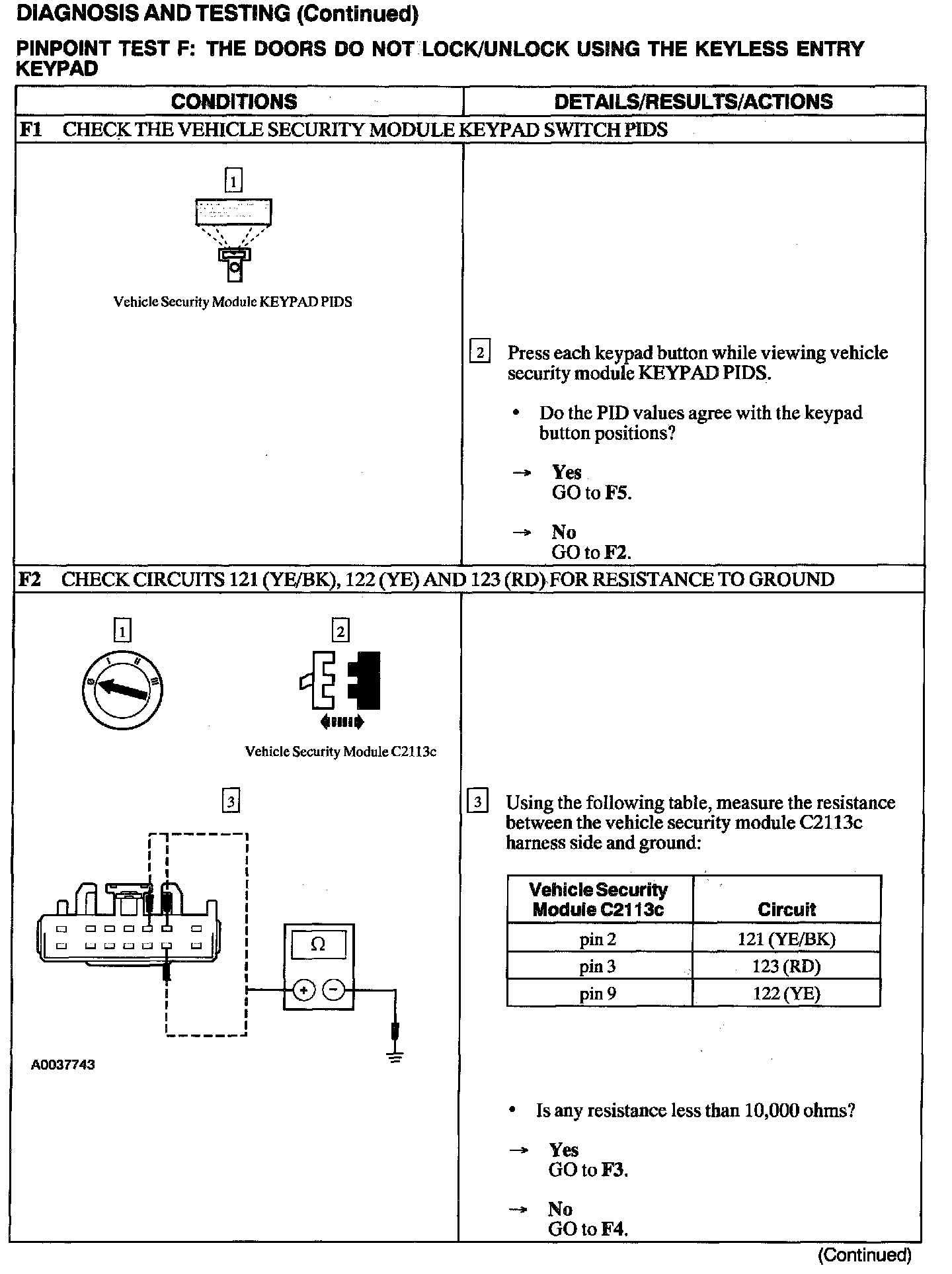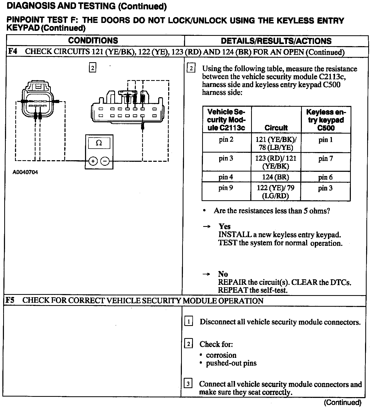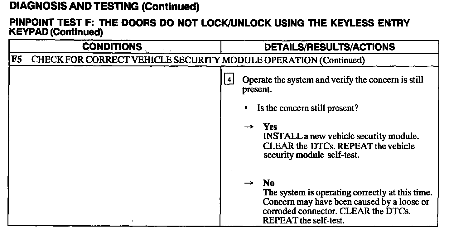Test F: Doors Do Not Lock/Unlock Using the Keyless Entry Keypad