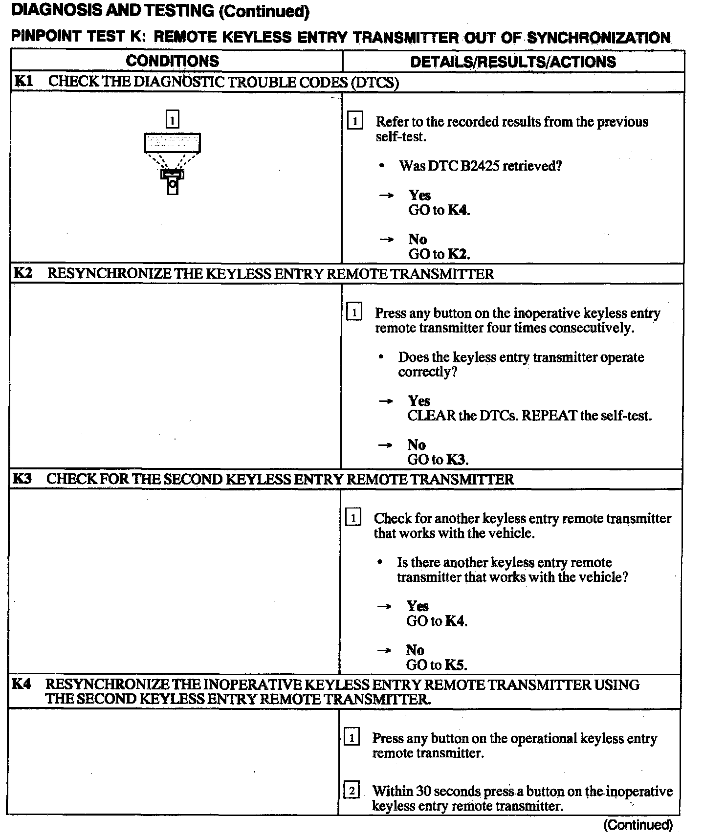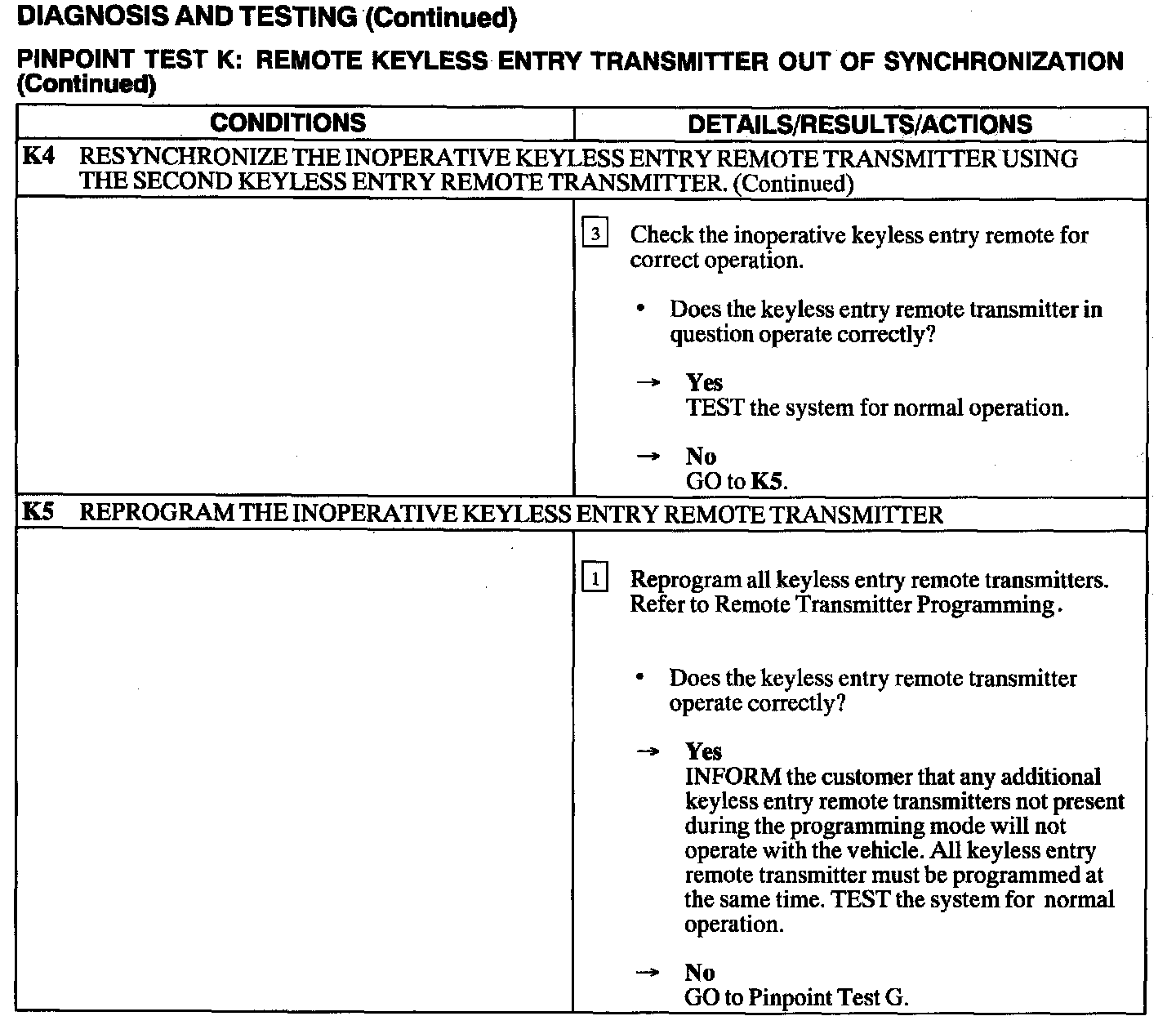 Test K: Remote Keyless Entry Transmitter Out of Synchronization
