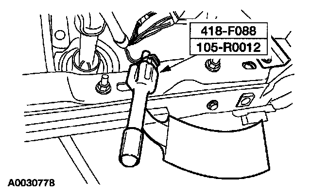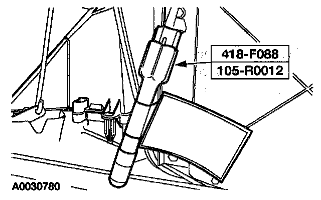 30. Attach the restraint system diagnostic tool to the driver seat safety belt buckle pretensioner floor electrical connector.