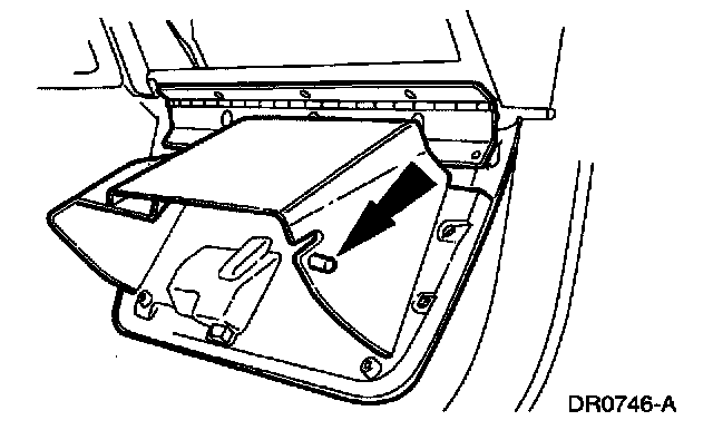 6. Push in on the two glove compartment door tabs and position the glove compartment downward.