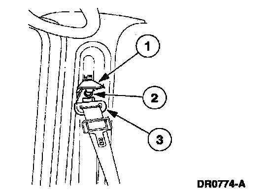 18. Remove the passenger side safety belt retractor pretensioner bolt.