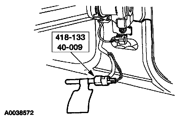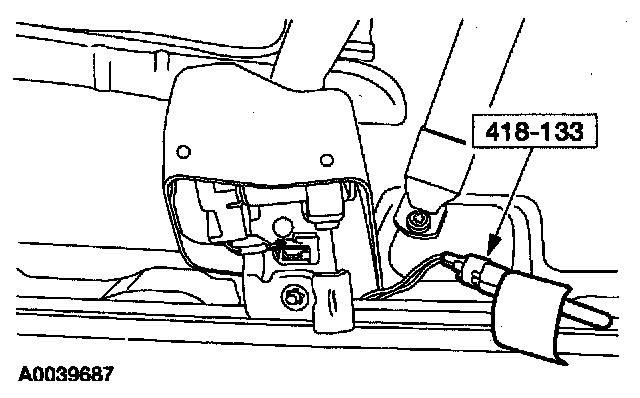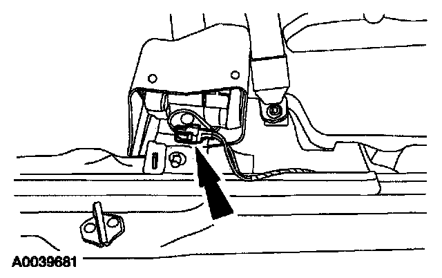 38. Attach the restraint system diagnostic tool to the driver side safety belt retractor pretensioner floor electrical connector.
