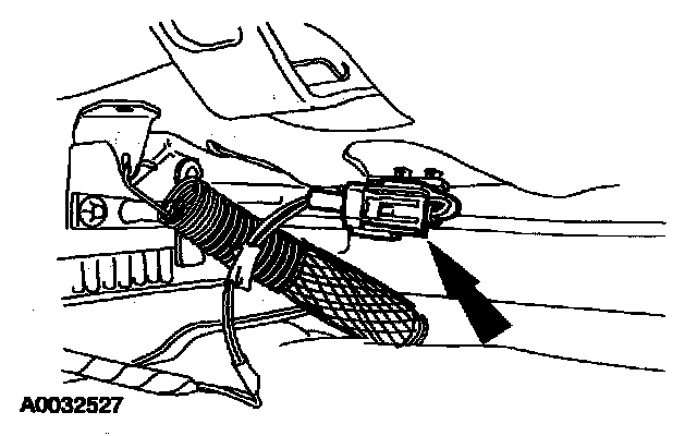 16. Attach the restraint system diagnostic tool to the driver side safety belt retractor pretensioner floor electrical connector.