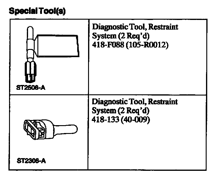 WARNING: THE RESTRAINT SYSTEM DIAGNOSTIC TOOL IS FOR RESTRAINT SYSTEM SERVICE ONLY. REMOVE FROM VEHICLE PRIOR TO ROAD USE. FAILURE TO REMOVE COULD RESULT IN INJURY AND POSSIBLE VIOLATION OF VEHICLE SAFETY STANDARDS.
