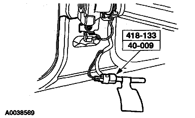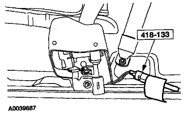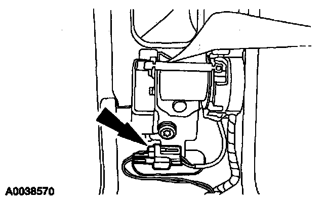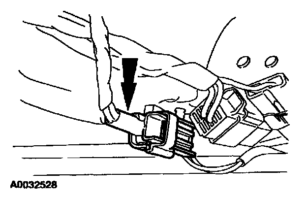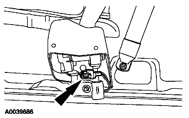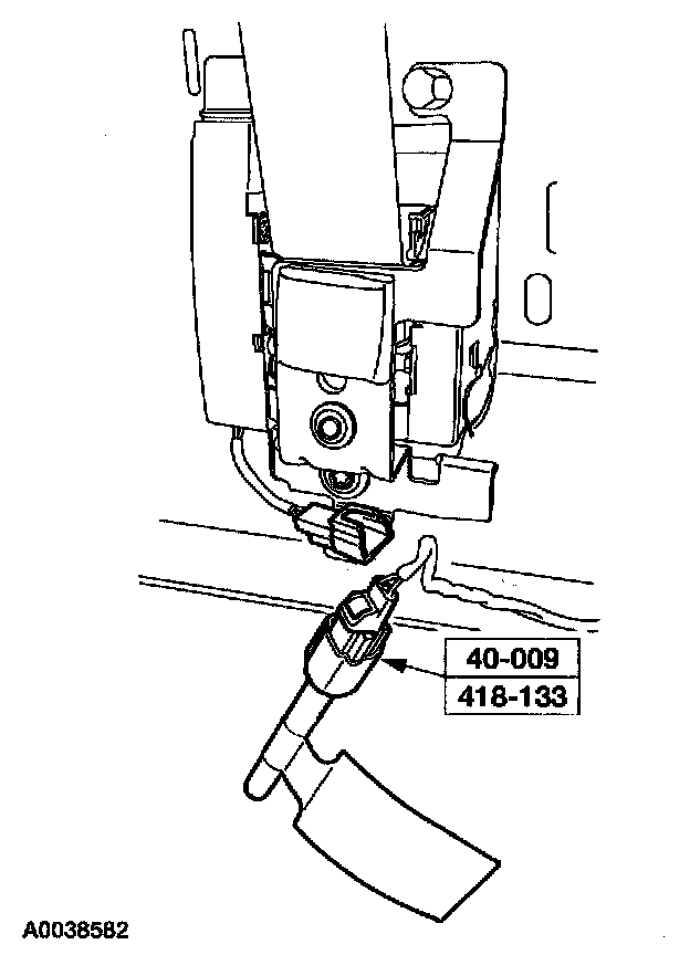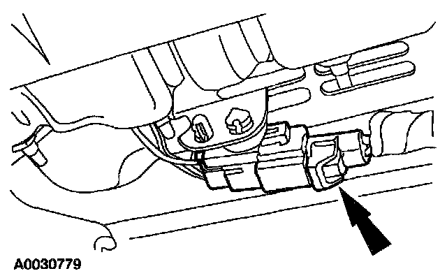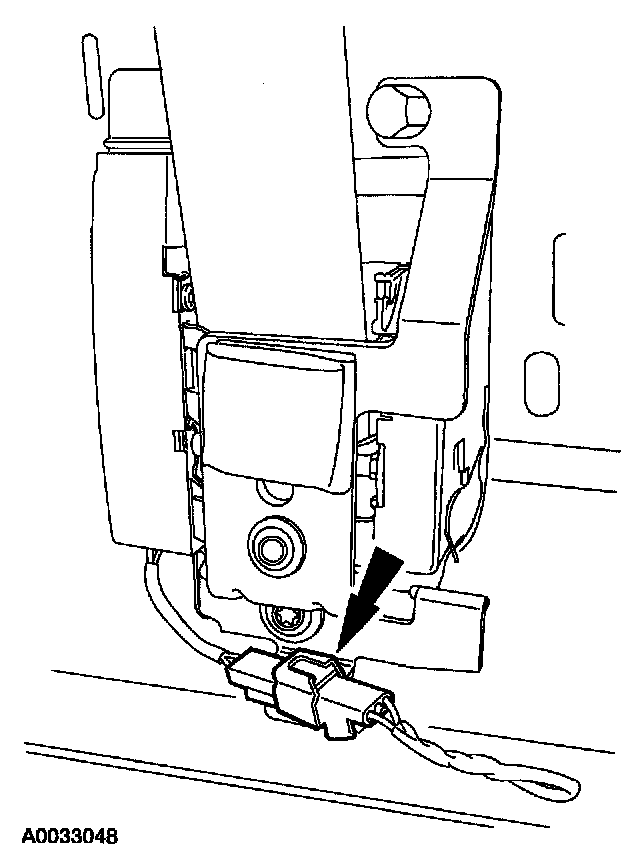 10. From under the driver seat, remove the restraint system diagnostic tool from the driver seat safety belt buckle pretensioner floor electrical connector.