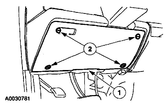 ^ Inspect the shoulder safety belt guide cover for damage. If the shoulder safety belt guide cover is damaged or the cover does not remain closed, install a new shoulder safety belt guide cover.