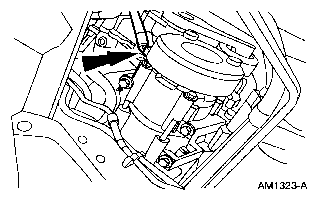 NOTE: The lower rear bolt must be removed with the A/C compressor.