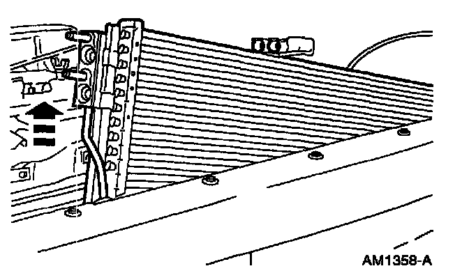 6. Remove the screws and remove the RH and LH A/C condenser core mounting brackets.