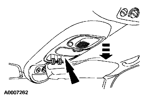 1. Remove the screw, disengage the clips, and lower the overhead console.