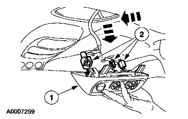 1 Pull down on the front of the auxiliary climate control assembly and slide forward and downward.