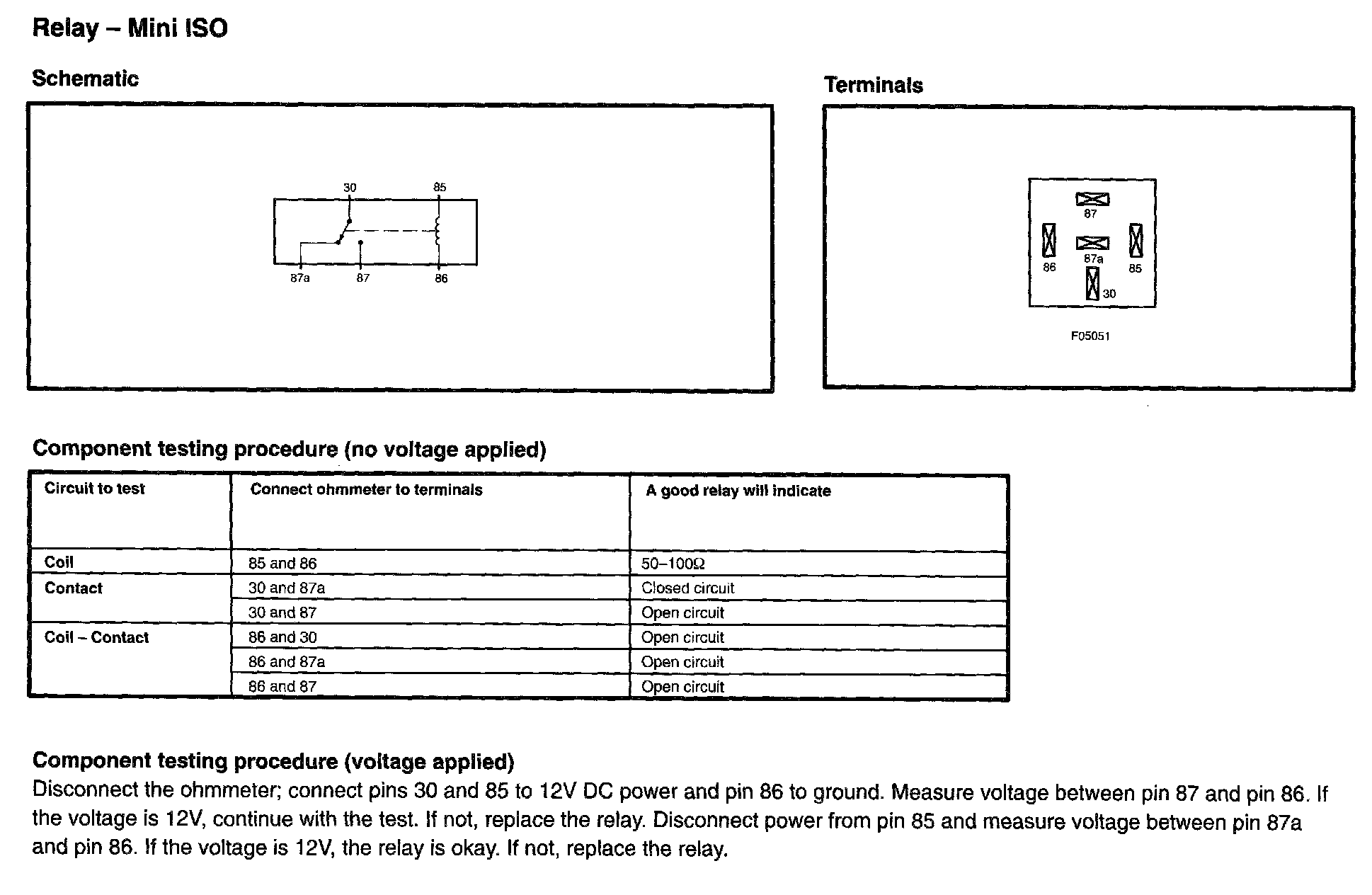 Main Relay (Computer/Fuel System): Testing and Inspection