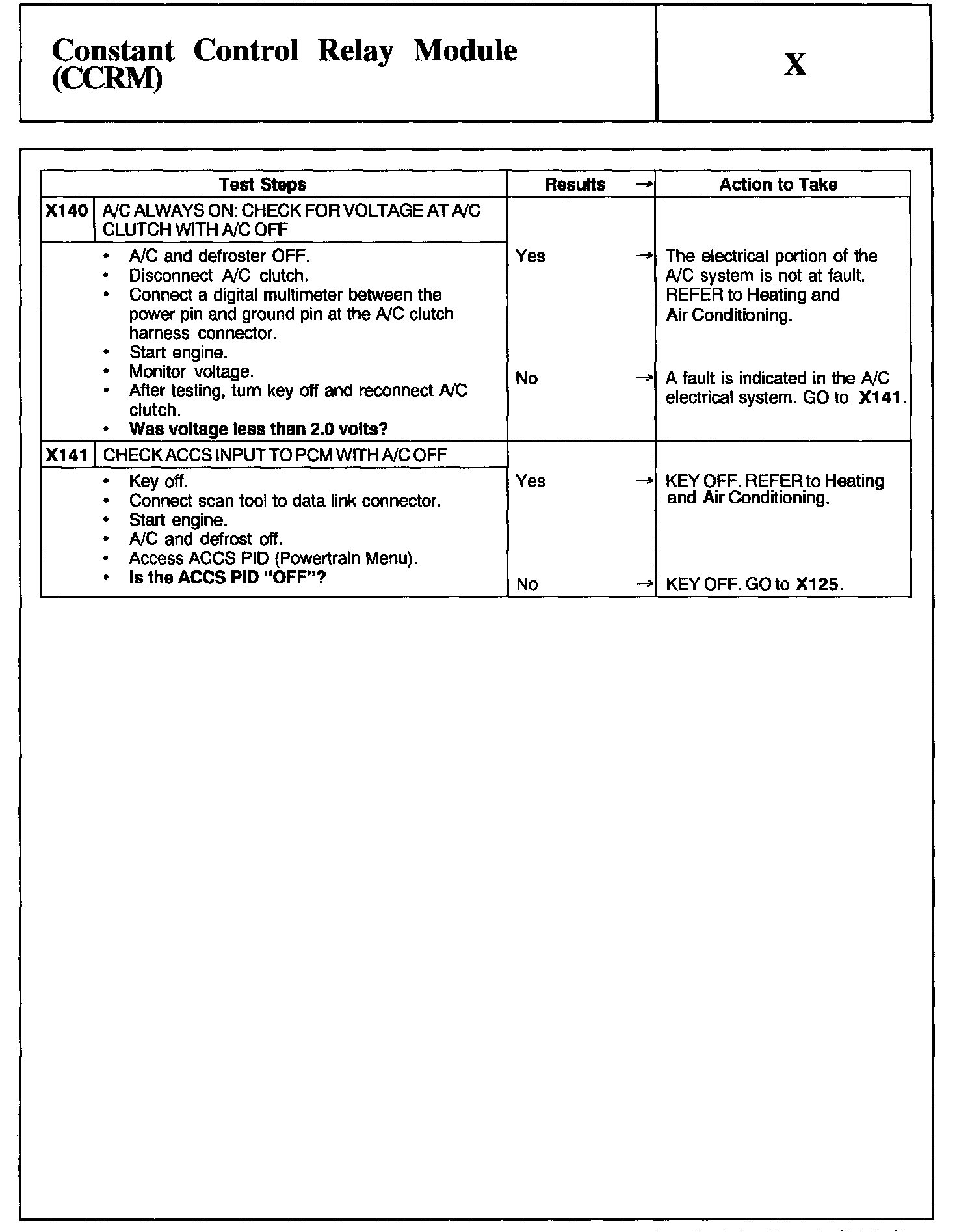 Home >> Ford >> 2002 >> Excursion 2WD V10-6.8L >> Repair and Diagnosis >> Powertrain Management >> Computers and Control Systems >> Testing and Inspection >> Pinpoint Tests >> Test X: Constant Control Relay Module (CCRM)