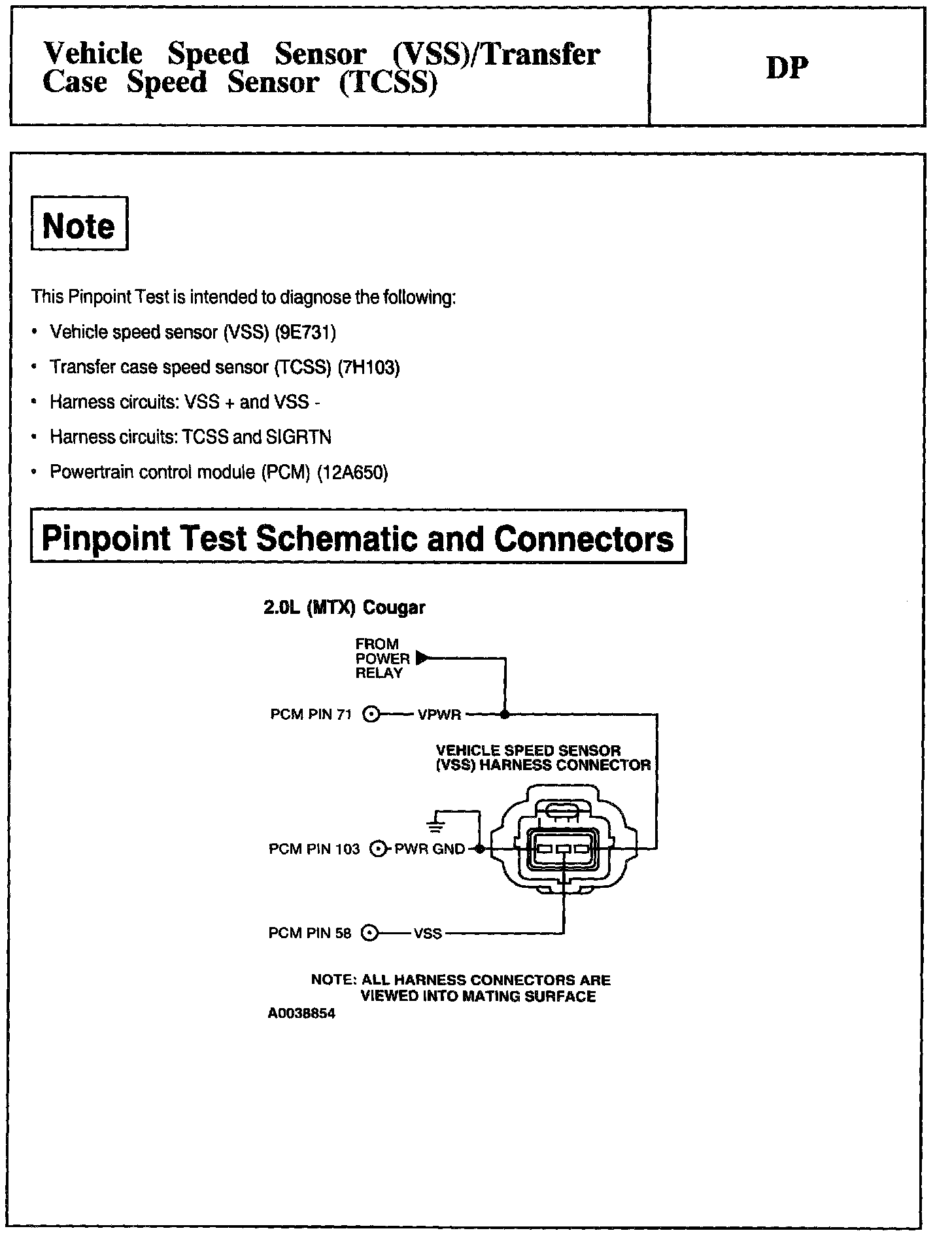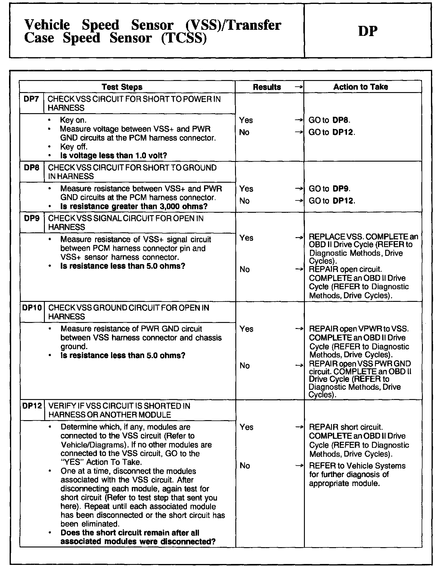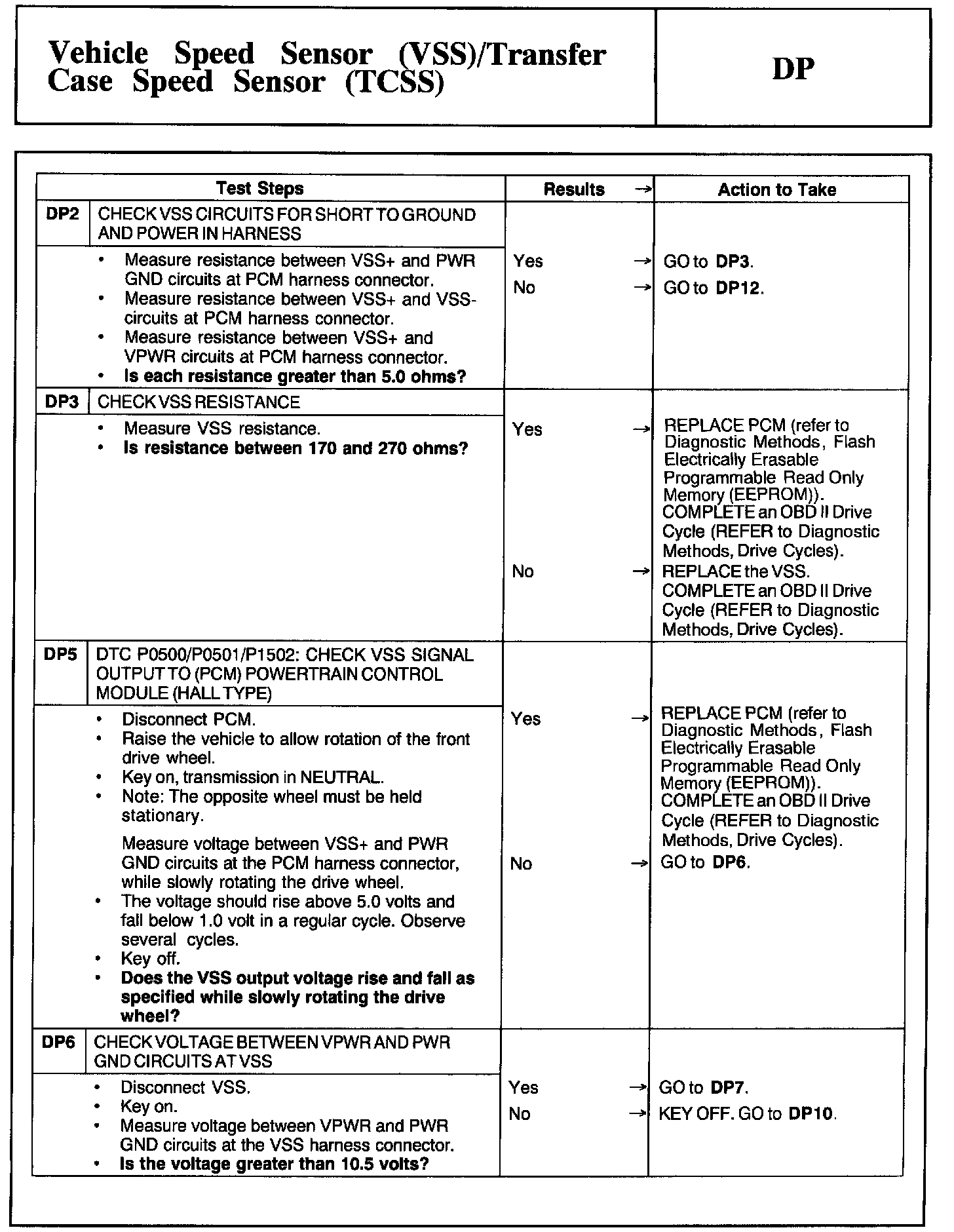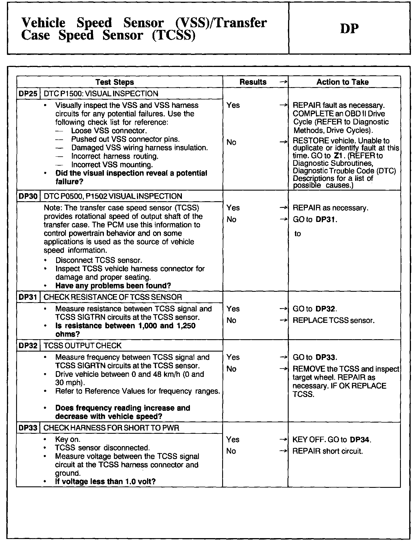 Tests DP: Vehicle Speed Sensor/Transfer Case Speed Sensor