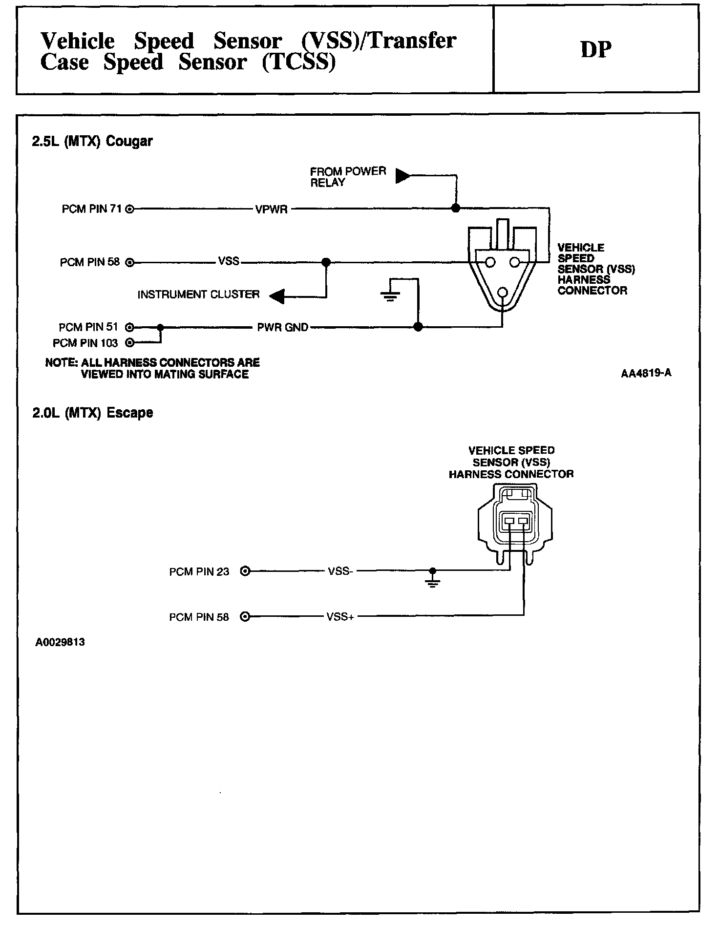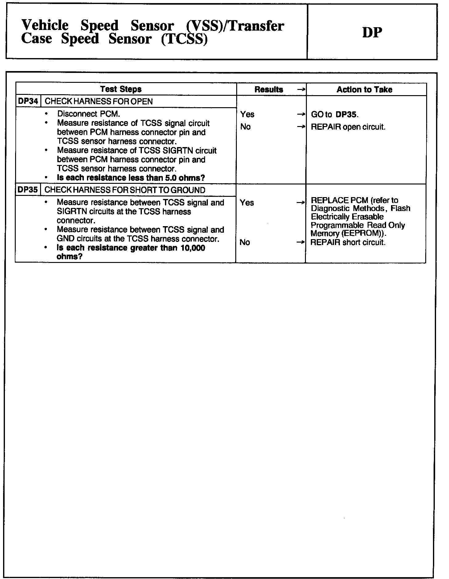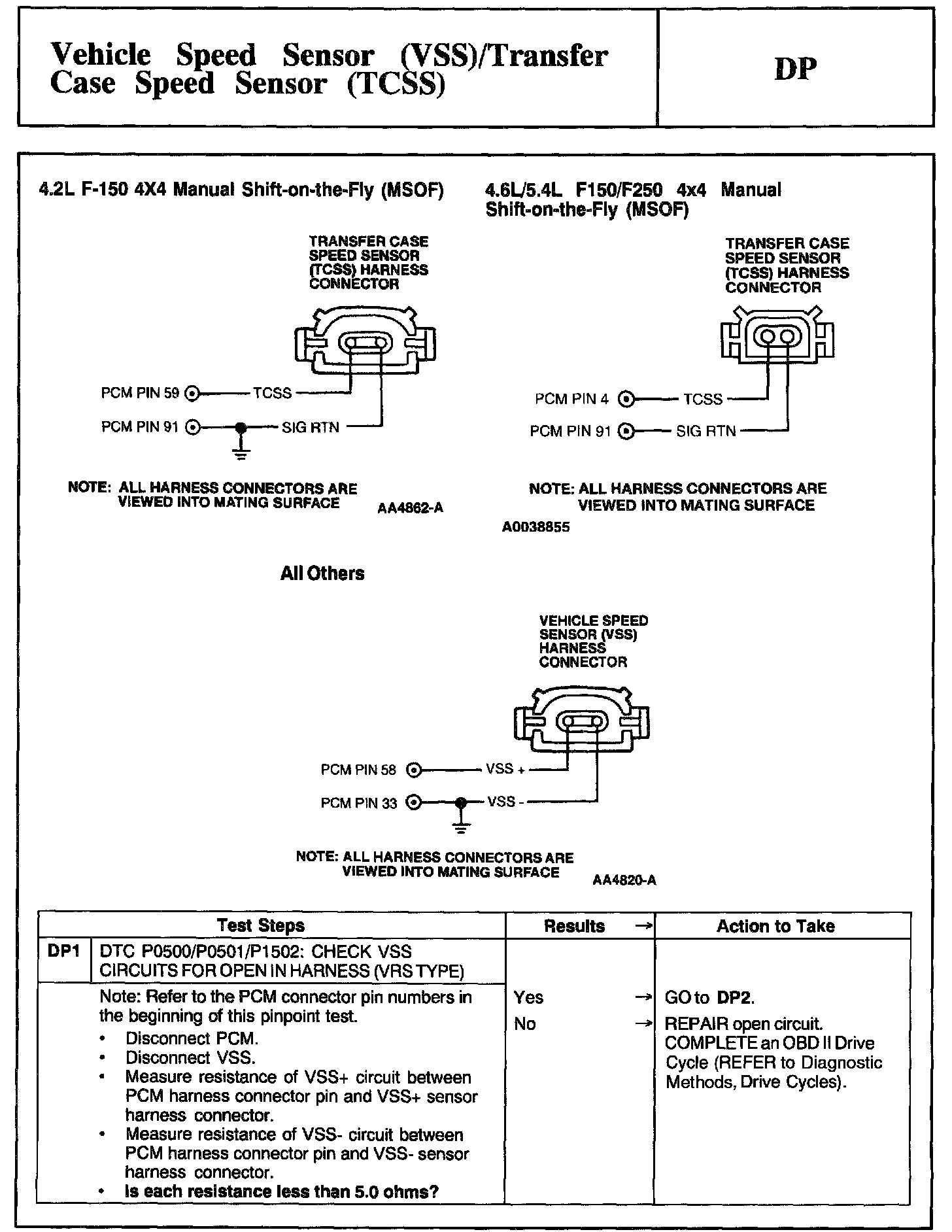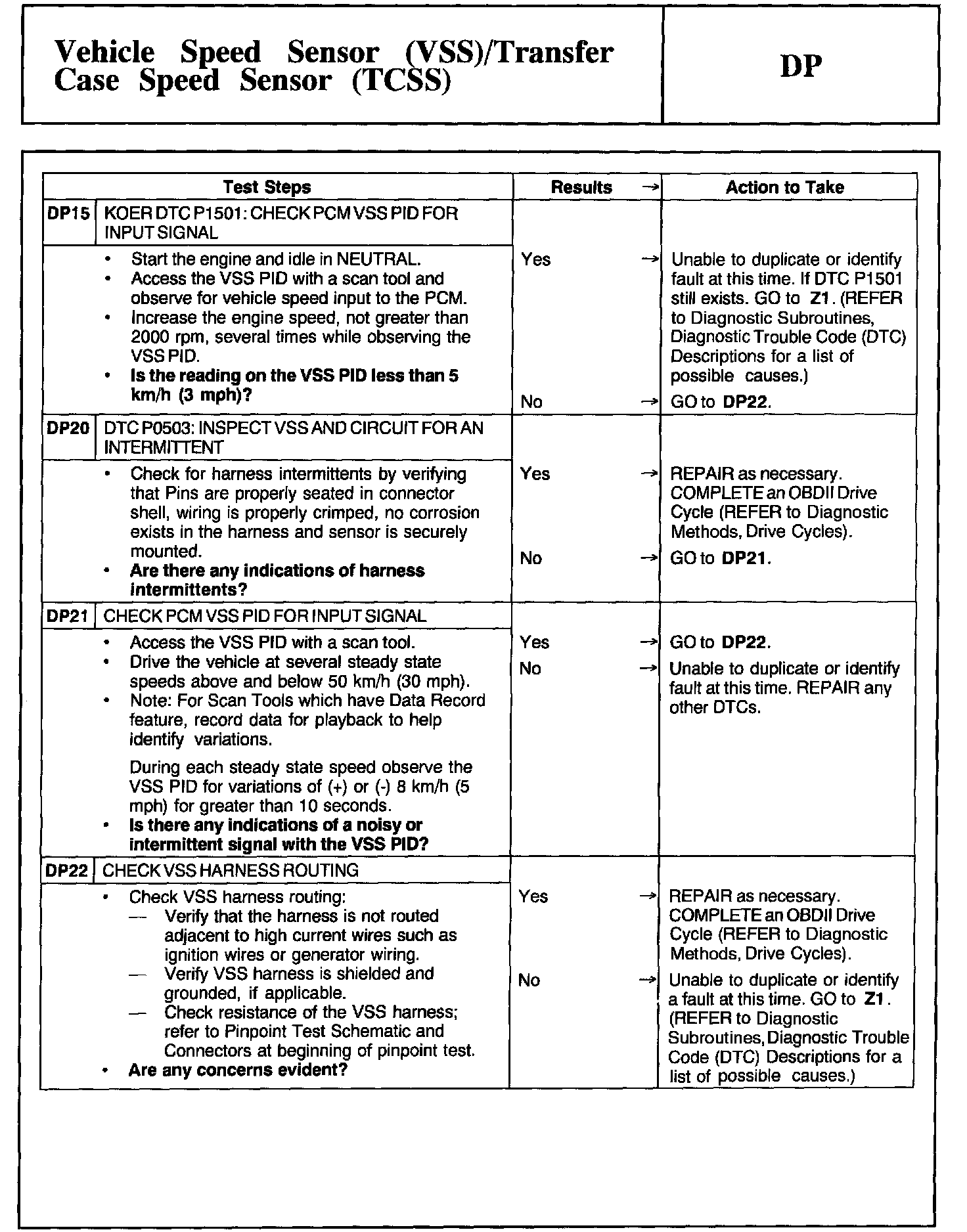 Tests DP: Vehicle Speed Sensor/Transfer Case Speed Sensor