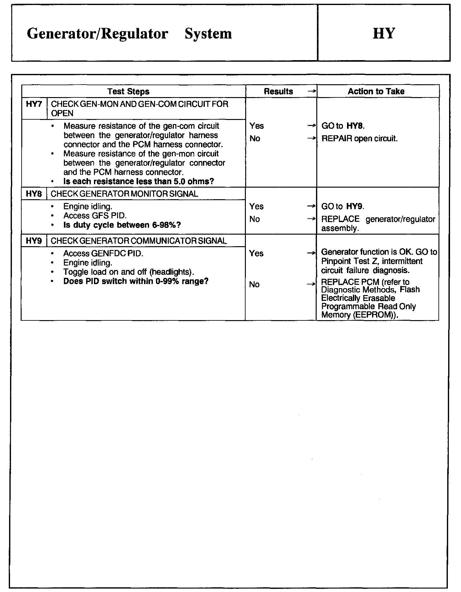 Tests HY: Generator/Regulator System