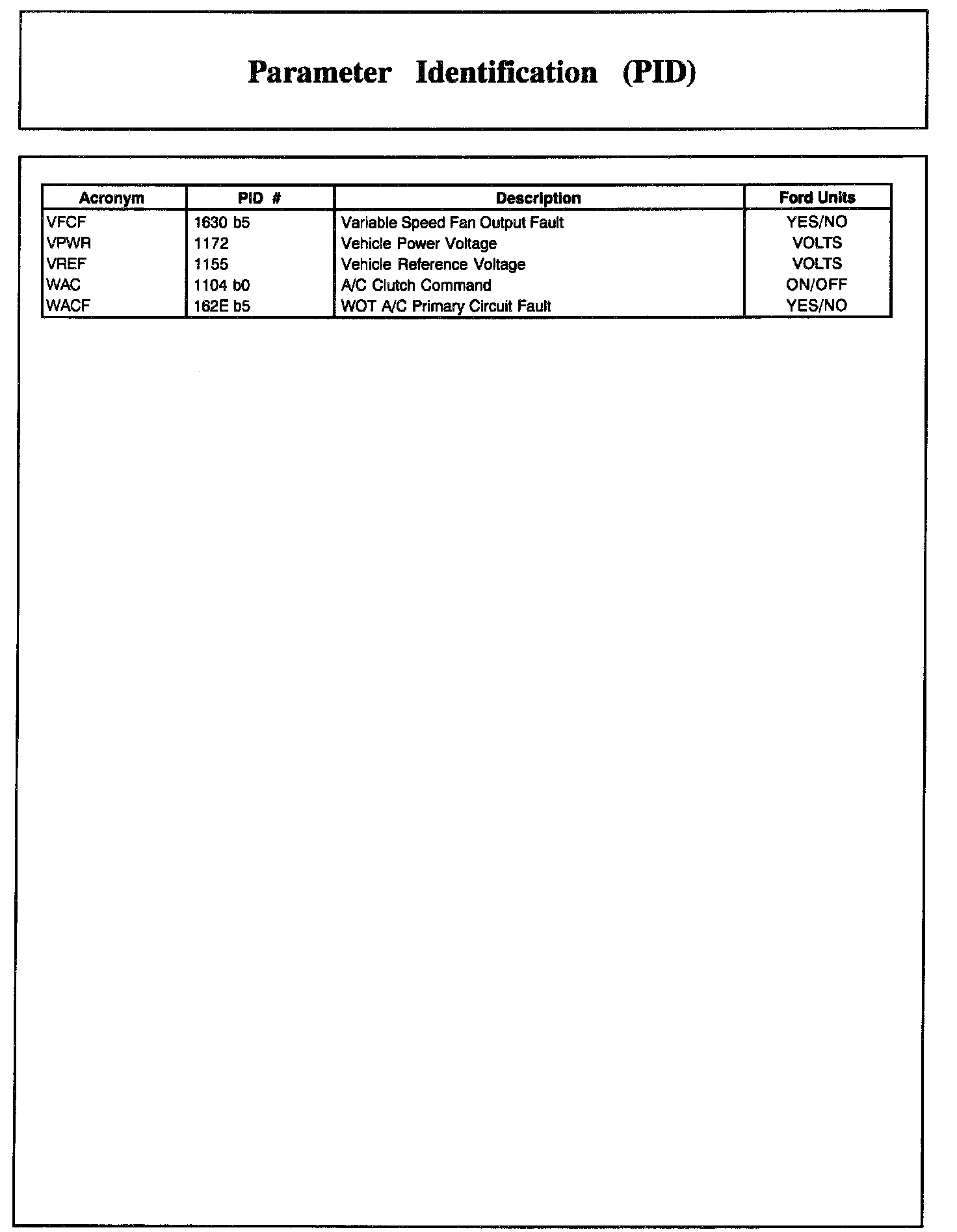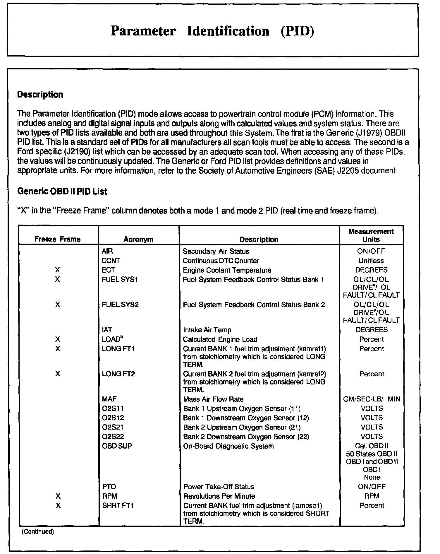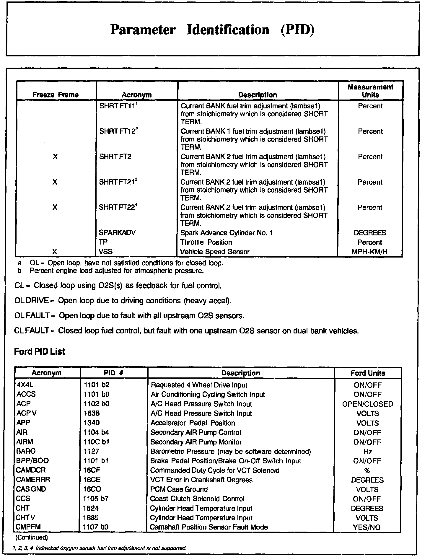 Home >> Ford >> 2002 >> Excursion 2WD V10-6.8L >> Repair and Diagnosis >> Powertrain Management >> Computers and Control Systems >> Testing and Inspection >> Scan Tool Testing and Procedures >> Normal Scan Data Values - Includes PIDs >> Parameter Identification (PID)