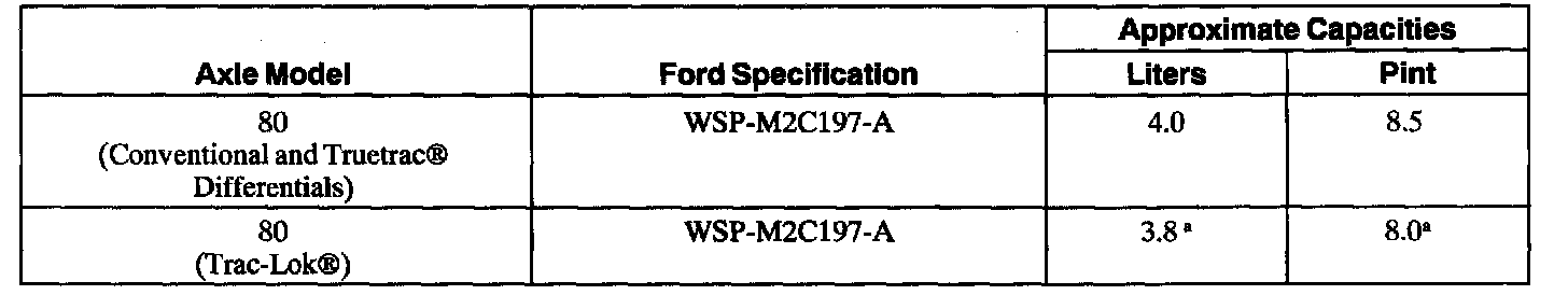 Ford Rear Axle Liters (Pints) 3.26 (7.0) a